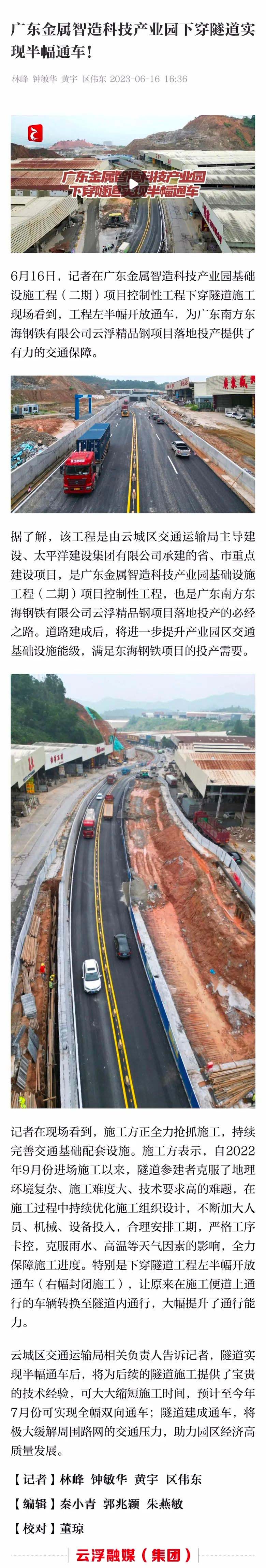 【云浮融媒】廣東金屬智造科技產(chǎn)業(yè)園下穿隧道實(shí)現(xiàn)半幅通車!