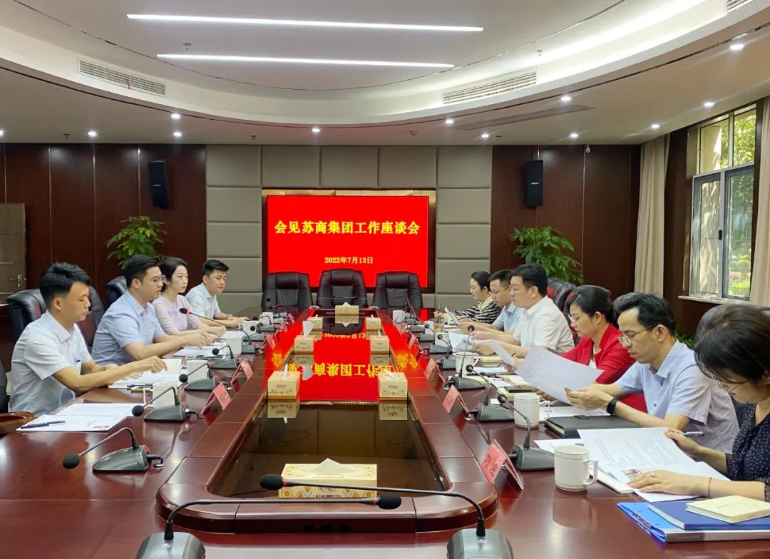 7月13日,蘇商集團董事局副主席、CEO王健闖在湖南省長沙市同雨花區(qū)委副書記、區(qū)長黃軍其會談,雙方就基礎(chǔ)設(shè)施投資與建設(shè)等合作事宜展開交流。